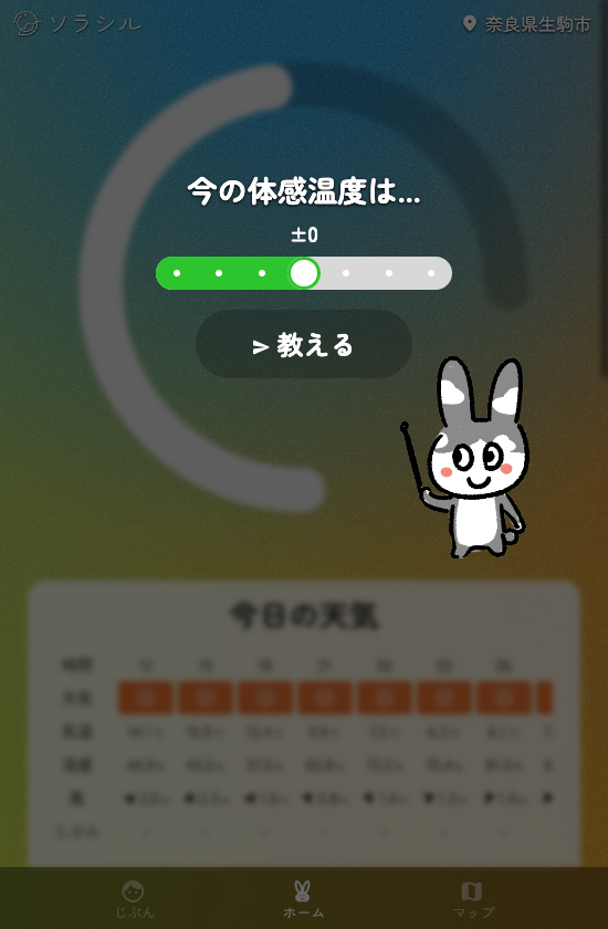 体感温度をsorashiruで継続してお知らせすることで、自分の感覚に合った「じぶん温度」が分かるようになります。